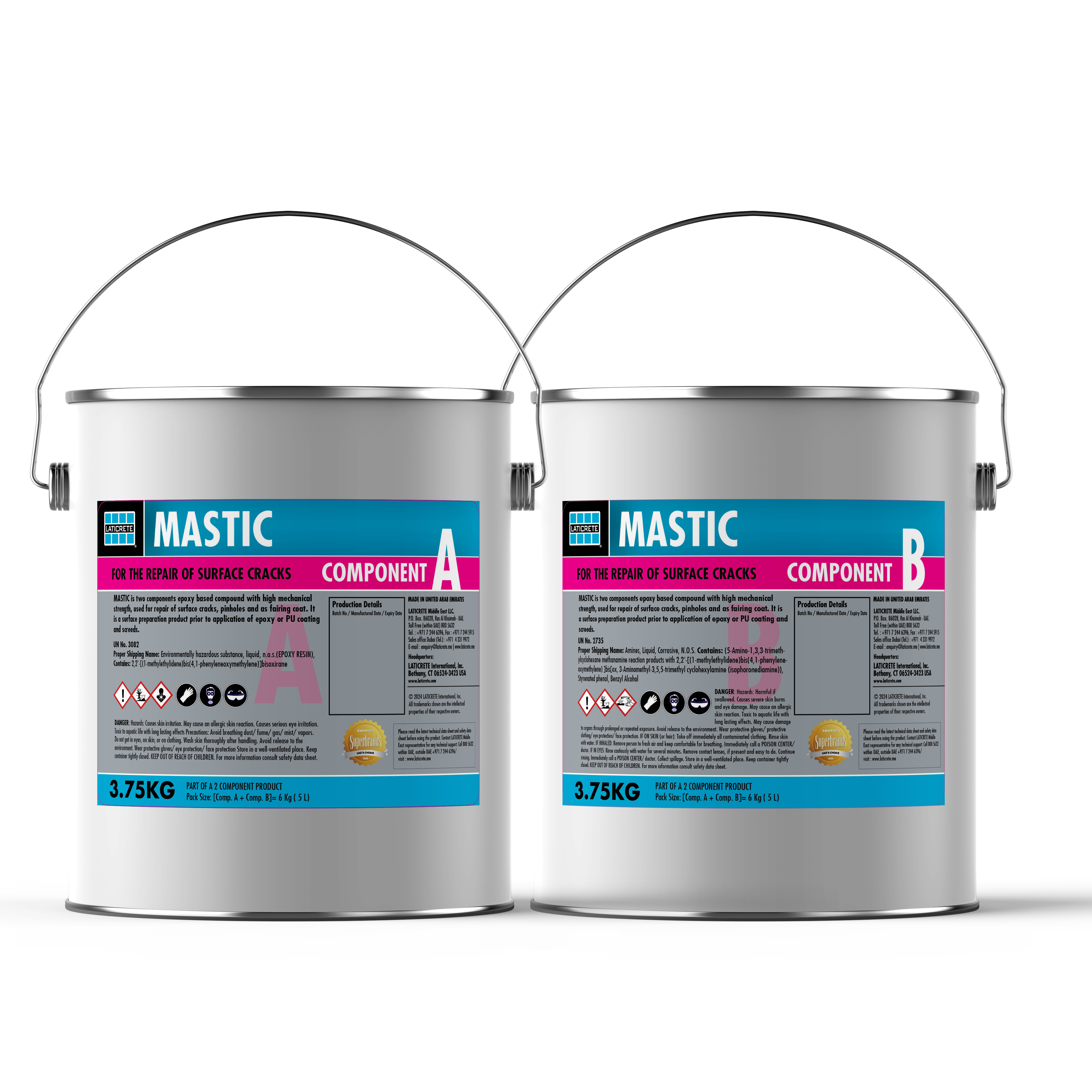 MASTIC is an improved formula two components epoxy based compound with high mechanical strength, used as a multi-purpose repair product, for filling cracks, pinholes and as surface repair prior to application of epoxy or polyurethane coatings.